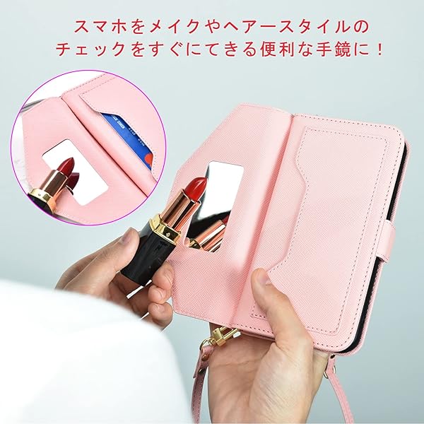 iPhone14 手帳型スマホケース肩掛け 首かけ 斜めがけ ショルダー ケース[鏡付き]iPhone14 財布型ケースiPhone14 スマホケース ショルダー カード収納[マルチパスケース]iPhone14 携帯 カバー iPhone14 case スタンド機能 mirror 可愛い 女性 落下防止落下保護...