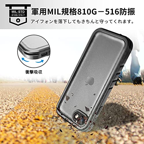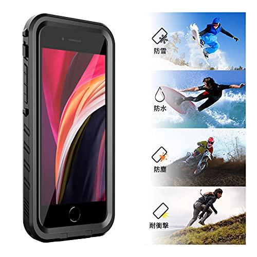 iPhone SE2 防水ケース iPhone SE3 防水ケース iPhone 7/8/SE2/SE3 ケース 完全防水 IP68防水規格 水中撮影 QI充電対応 iPhone SE 第3世代 ケース 防塵 防雪 耐衝撃 iPhone SE 第2世代 ケース 水泳 海 指紋認証対応 軽量 iPhone 7 / 8 防水ケース お風呂 4.7インチ (ブラック)