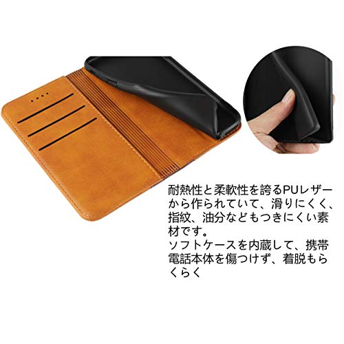 ●【上質な素材】外部は上質な合皮レザー素材を採用しており、放熱性が良く、傷や埃を防ぐことができます、滑りにくく、指紋、油分などもつきにくく。インナーケースは弾力性の柔軟黒TPU素材を採用しており、角までしっかり保護できるケースです、柔軟性があり本体への装着脱着も簡単です。衝撃吸収機能あり、しっかりの二重保護でお携帯を守り抜きます。