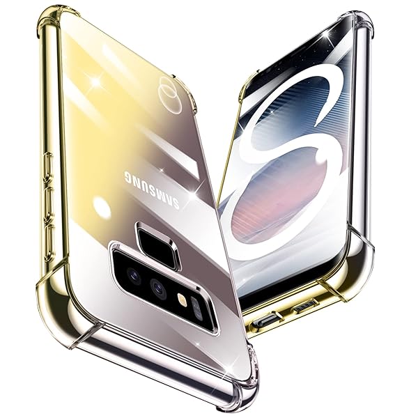 Galaxy Note 9 ケース グラデーション クリア 全面保護カバー 耐衝撃 衝撃吸収 tpu 耐震 ソフト軽量 薄型 落下防止 透明 耐久 ストラップホール付き 黄変防止 指紋防止 滑り防止 ワイヤレス充電に対応 人気 携帯カバー 黒+金