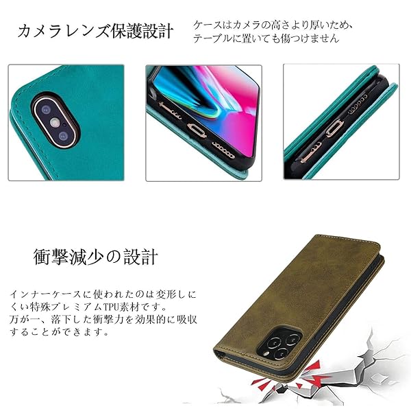 【上質な素材】外部は上質な合皮レザー素材を採用しており、放熱性が良く、傷や埃を防ぐことができます、滑りにくく、指紋、油分などもつきにくく。インナーケースは弾力性の柔軟黒TPU素材を採用しており、角までしっかり保護できるケースです、柔軟性があり本体への装着脱着も簡単です。衝撃吸収機能あり、しっかりの二重保護でお携帯を守り抜きます。