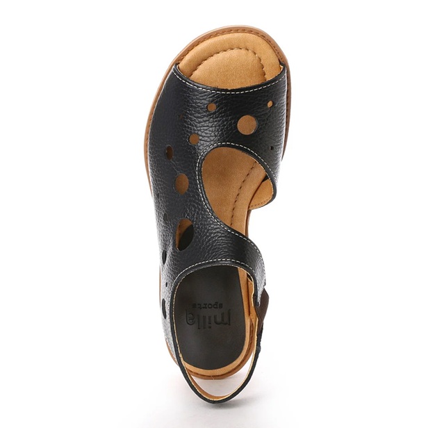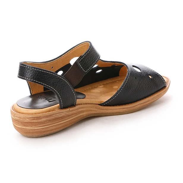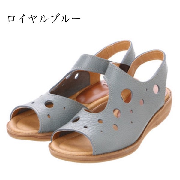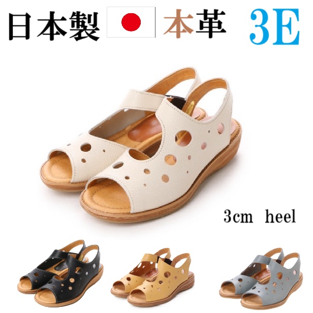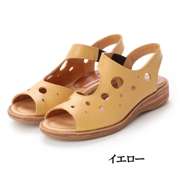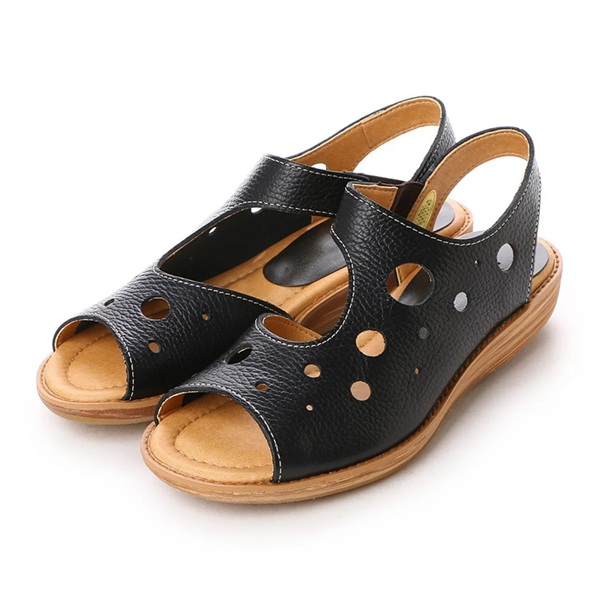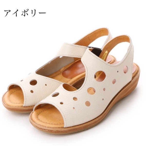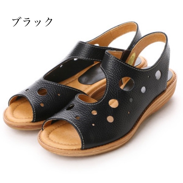 本革 撥水加工 水玉 パンチング 楽ちん カジュアル サンダル ローヒール 幅広 3e 外反母趾 低反発 疲れにくい 歩きやすい 通気性