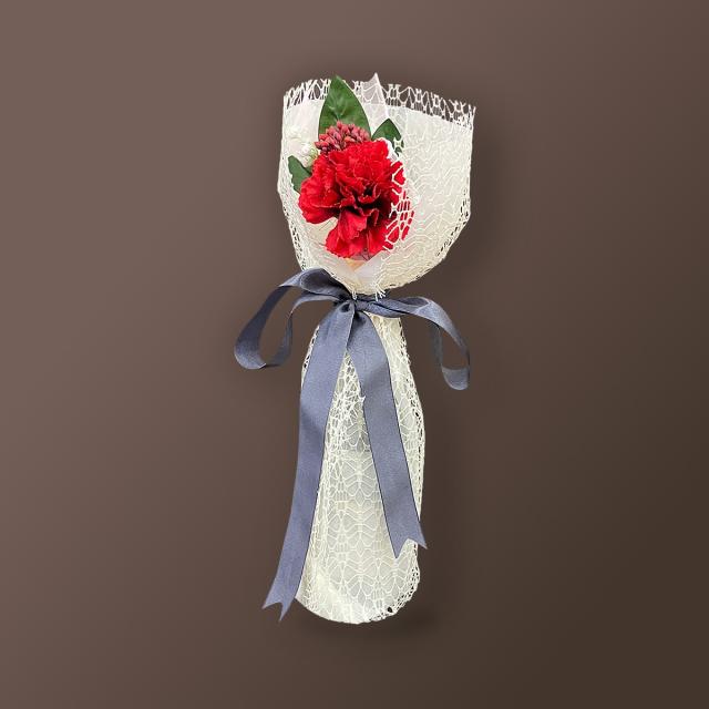 レースのラッピングにチャコール色リボンとお花をつけて母の日用にアレンジしました。感謝の気持ちを込めて1年に一度の大切な母の日にどうぞご利用ください♪