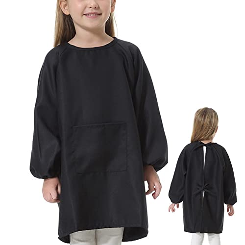 [litulituhallo] スモック 子供用 無地 エプロン 男の子 女の子 給食 お絵かき 幼稚園 保育園 ブラック L