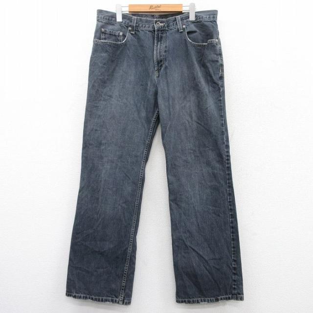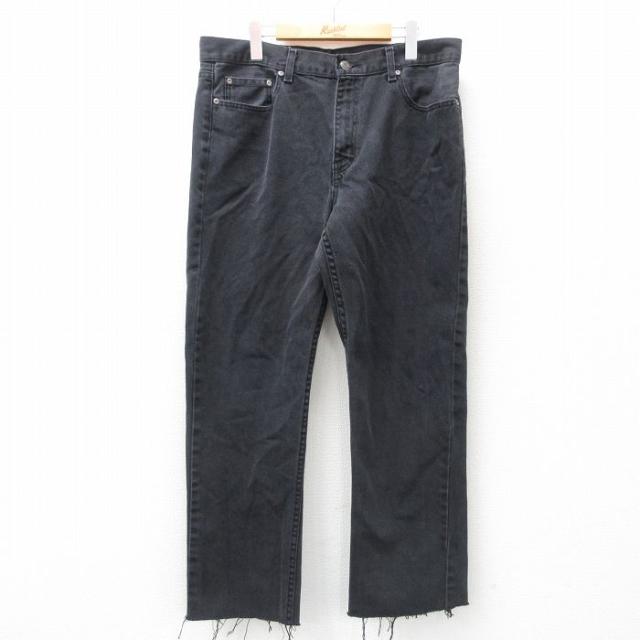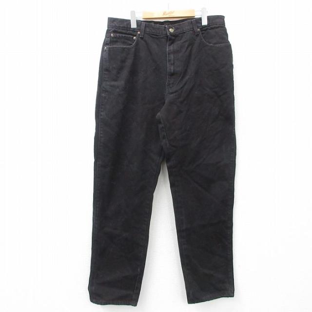 古着 ジーンズ メンズ コットン 黒 ブラック デニム W36 中古 ボトムス ジーパン Gパン ロング パンツ 中古 古着