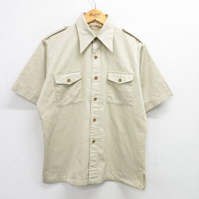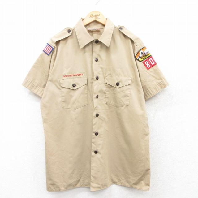 古着 半袖 ボーイスカウト シャツ メンズ 90年代 90s ワッペン USA製 ベージュ カーキ Lサイズ 中古 トップス 中古 古着