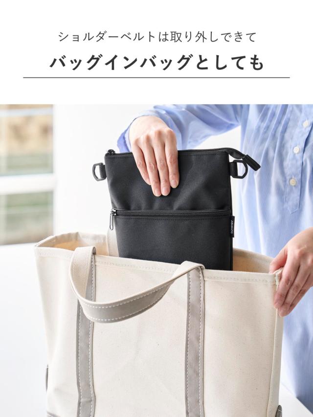 ショルダーストラップは76〜138cmの間で長さが調節できます。取り外しも可能なので、バッグインバッグとしてもおすすめです。