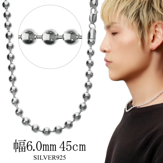 ボールチェーン 幅約6.0mm 45cm シルバー925 シルバーチェーン チェーンネックレス ネックレス チェーン シルバー 極太 ボールネックレス