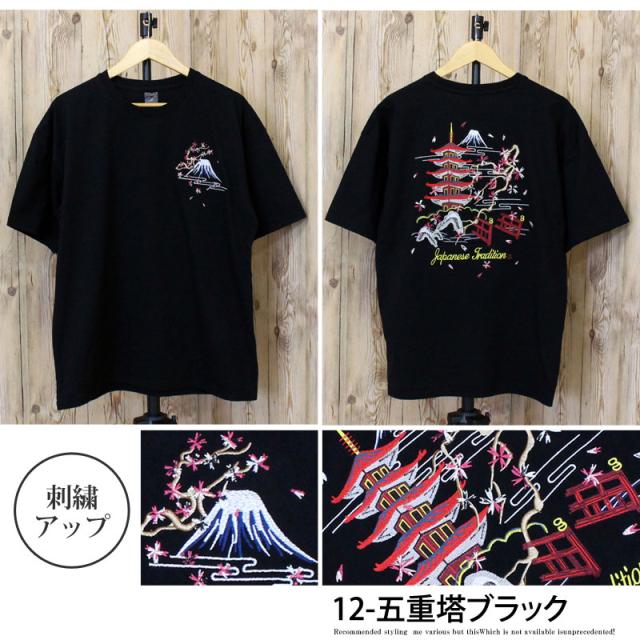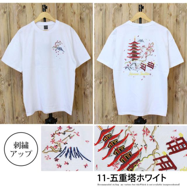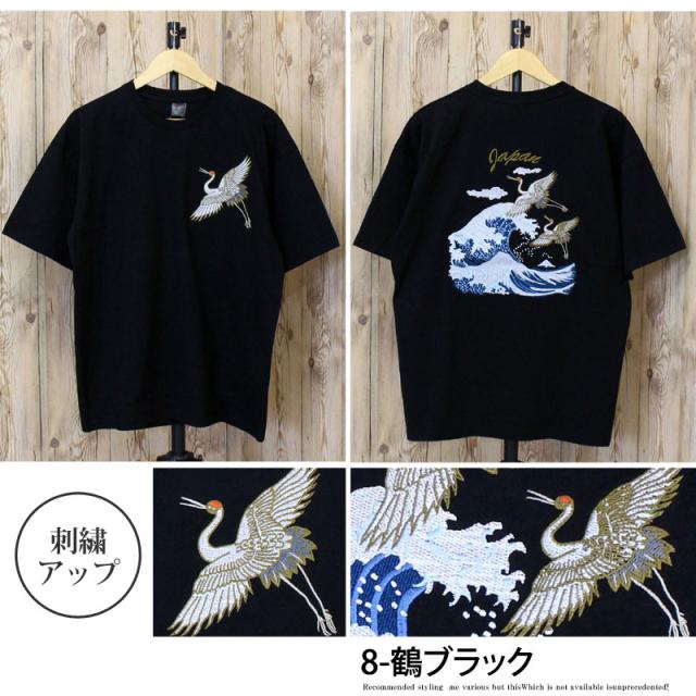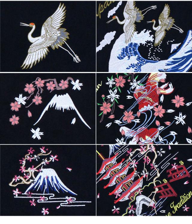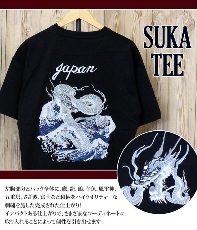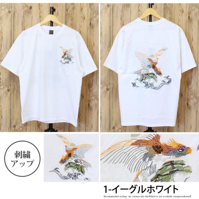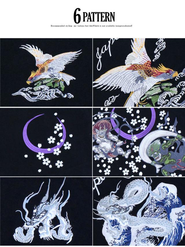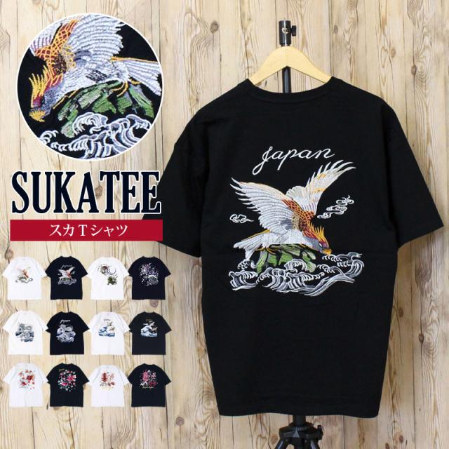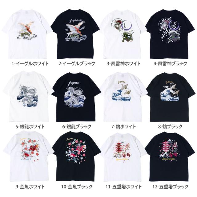 新作 春 夏 Tシャツ メンズ 半袖 刺繍入り バック スカT スカジャン柄 和柄 イーグル 風神 雷神 龍 鶴 金魚 五重塔 送料無料 新作 カジュアル ストリート ゆうパケ