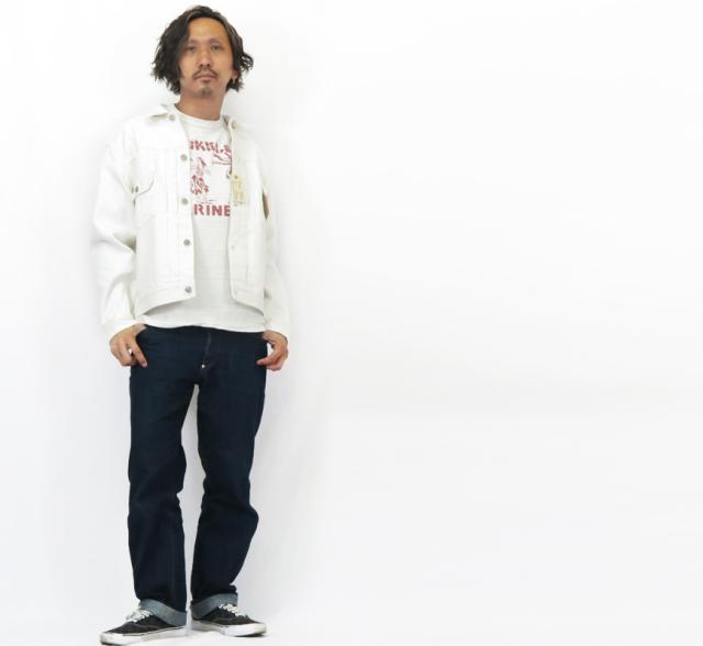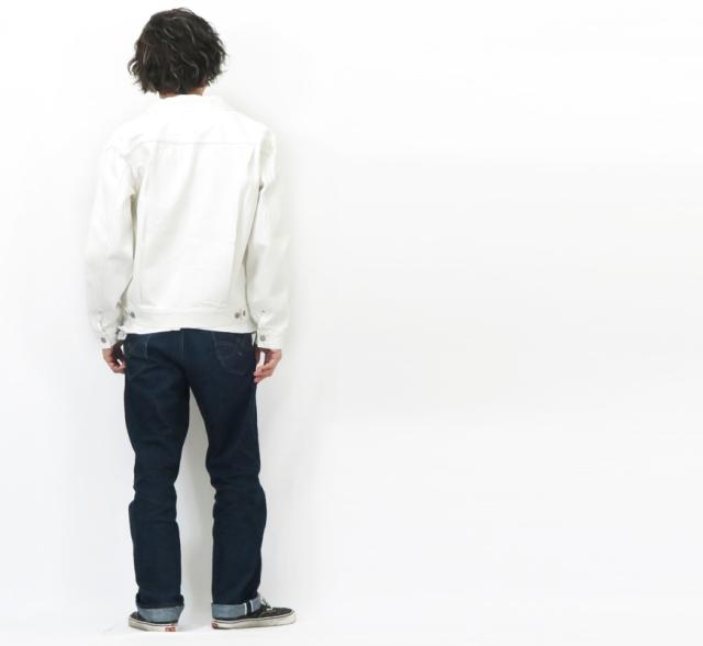 1950年代を代表する名作を、経糸にホワイト、緯糸に生成の糸を使用したオリジナルのホワイトデニムで仕上げている。