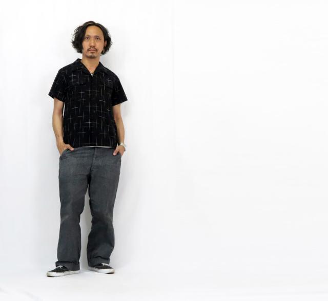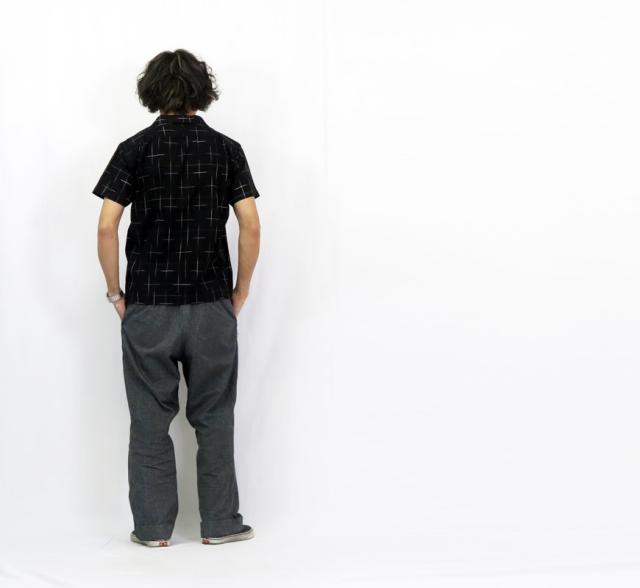 黒紋付染による絣半袖シャツです。