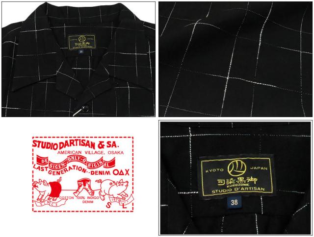 【シャツ】 STUDIO D'ARTISAN 京黒紋付 染絣 格子 チェック柄 半袖 オープンカラーシャツ 5720 【通販 アースマーケット】