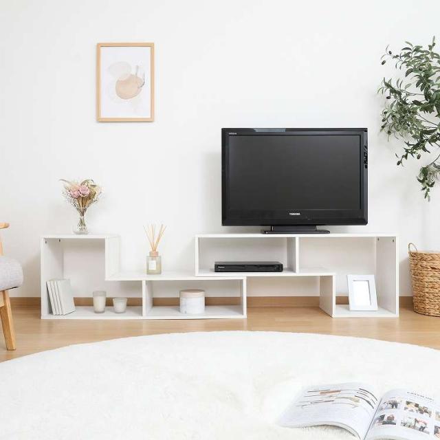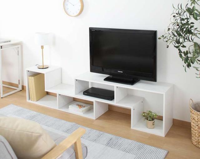 自由なレイアウトができるL字型伸縮テレビボード裏表のないデザインなので空間に合うスタイルで使用することができます。最大幅約201cmでインテリアも楽しみながら広々と使えるサイズ感です。最小幅が105cmで置き方次第で伸縮できるため、お部屋のサイズに応じて調節することができます。べーシックなI字型から省スペースに収まるL字型配置まで、角度を変えるだけでレイアウトの幅が広がります。背面や側面からコードを通して配線も自由が利く仕様です。さらに通気性にも優れ、熱がこもりにくいプラスポイントも。木目調と落ち着いたカラーでお部屋に馴染みます。