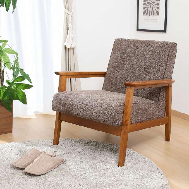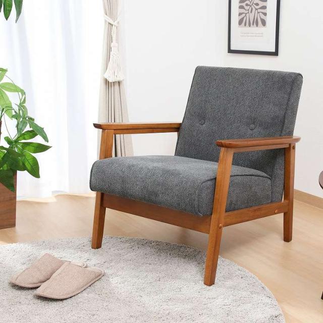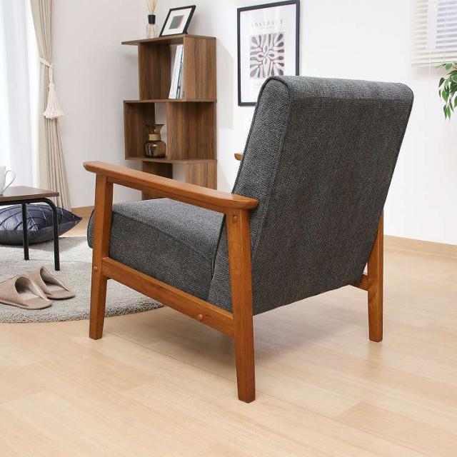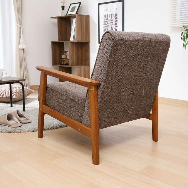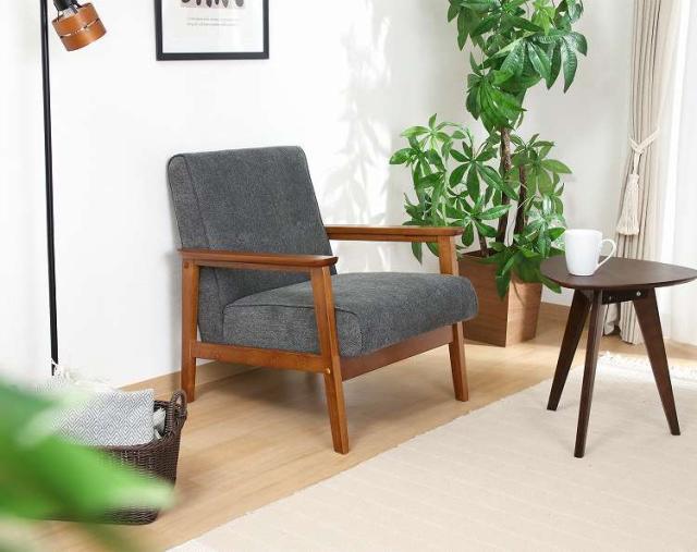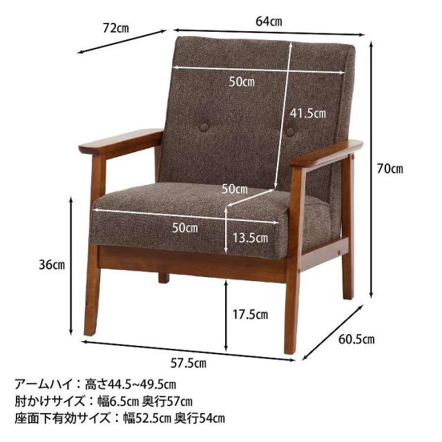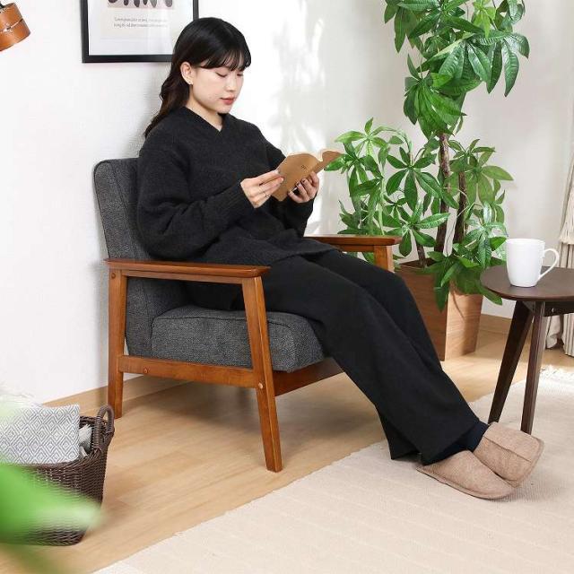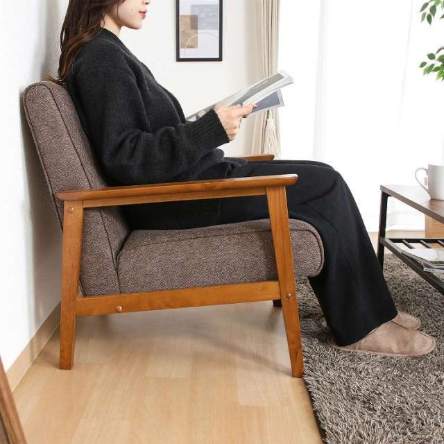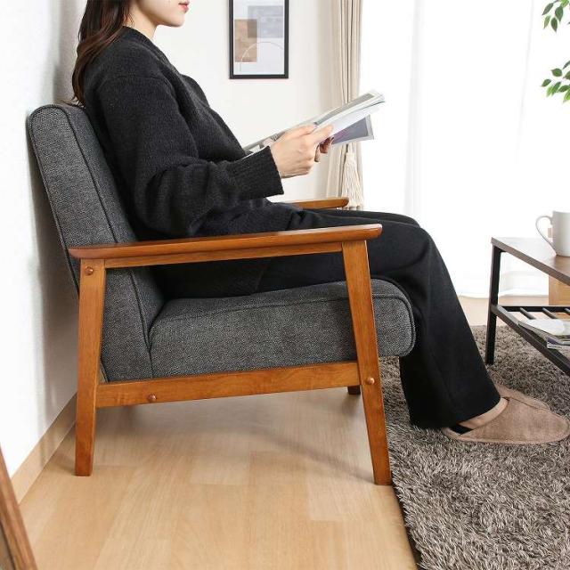 シンプルデザインを追求した1人掛けソファフレームが細く圧迫感を感じさせません。スッキリとしたデザインでシックなお部屋を演出します。座面は幅50×奥行50cmで、男性でもゆったりと腰掛けることができます。ひじ掛けがあるので立ち座りもしやすく、少し傾斜のある座面で身体が自然ともたれるデザインになっています。背面から見ても美しいのでリビングとダイニングなど、お部屋を間仕切りながらご使用いただけます。ウェービングベルトにウレタンフォームを使い、沈み込みすぎず快適な座り心地です。座面下は17.5cmあり、ソファの下は柄の長い掃除用品やロボット掃除機も通れます。埃が溜まりやすいソファの下を綺麗に保つことができます。