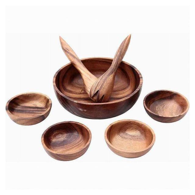 アカシアボウルセット(スプーン&フォーク付)Bラウンド 天然木 食器 カトラリーセット キッチン 台所用品 スプーン フォーク(代引不可)【送料無料】