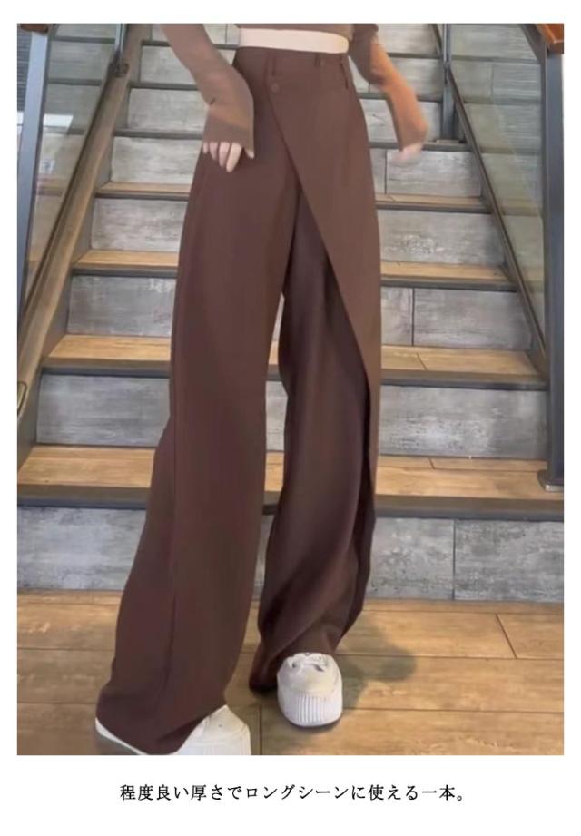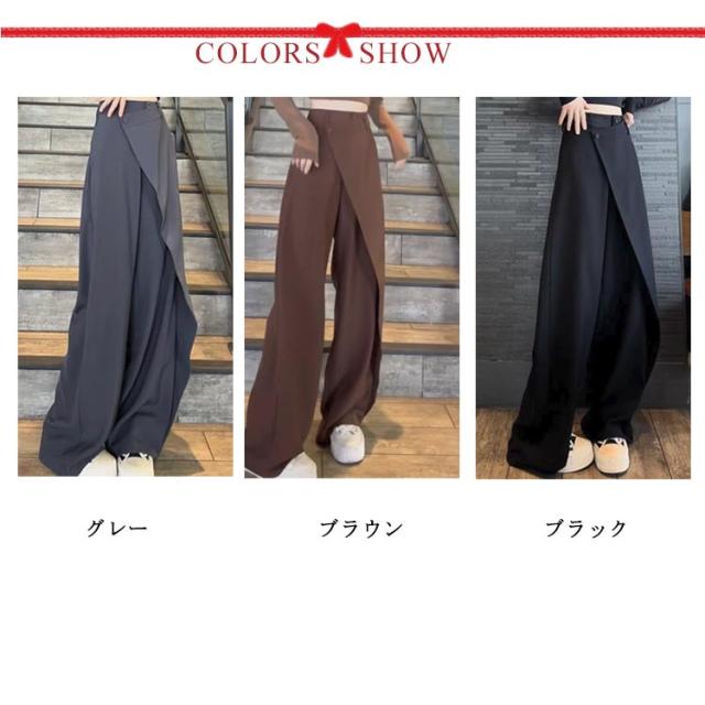 ゆったり ストレートパンツ アシメトリー ワイドパンツ レディース スーツパンツ ワイド 長ズボン 落ち感 ハイウエスト ボトムス お洒落 ブラック 茶色 グレー 送料無料