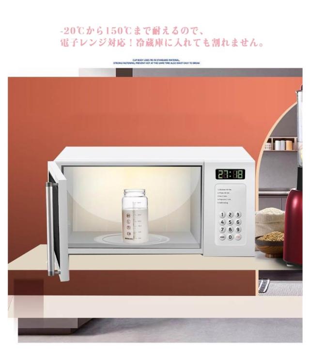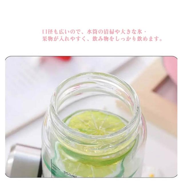 | 車載ボトルのデザインが携帯やすいウォーターボトルです。 -20℃から150℃まで耐えるので、電子レンジ対応!冷蔵庫に入れても割れません。 目盛りが付いており、飲み物の残量が一目で分かり、摂取量を把握することができます。 口径も広いので、水筒の清掃や大きな氷・果物が入れやすく、飲み物をしっかり飲めます。 密封性の高い蓋を使用し中身が漏れることはありません。 水筒カバーがついているので、熱い飲み物も持てます。 ウォーターボトル、コーヒータンブラー、ジュースボトル、ショットグラスや牛乳瓶としてピッタリです。 | |