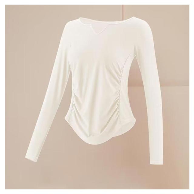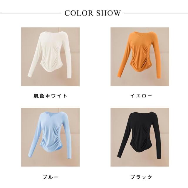 ヨガウェア 長袖 春 秋 かわいい 女性 レディース きれい トレーニング ストレッチ 着圧 伸縮性 ピラティス 吸水速乾 無地 フィットネス 運動会 体育祭 トレーニングウェア ジム 運動着 ダイエット ランニング 肌色ホワイト イエロー ブルー ブラック