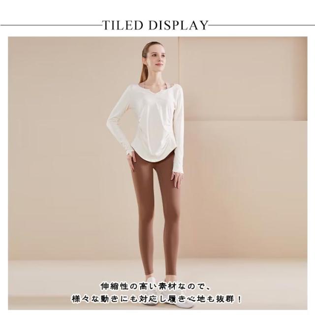 | デコルテを美しく見せるVネック仕様。ヨガウェア 長袖 伸縮性の高い素材なので、様々な動きにも対応し履き心地も抜群! 吸汗速乾性・ストレッチ性も兼ね備えています。汗を素早く吸収し、身体の動きに合わせてしなやかに伸縮する生地なので、着心地も良いウェアです。お手持ちのスポーツウェアと合わせて着用も素敵なウェアコーデをお楽しみください。 ヨガ・ホットヨガ・ジム・ 筋トレ・フィットネス・ランニング・テニスなど幅広いスポーツシーンにおすすめです。 | |