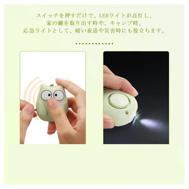 | 可愛くて機能的なLEDライト付き防犯ブザー。 可愛い猫ちゃんやペンギン、フクロの3種類から選べる防犯アラーム、コンパクトで可愛いデザイン、バッグやランドセルのアクセサリーとして、いつも持ち歩くことができます。 防犯ブザーの性能基準85dbを大きく上回る大音量の130dbで、周りにいち早く危険を知らせや不審者への威嚇対策に。 スイッチを押すだけで、LEDライトが点灯し、家の鍵を取り出す時や、キャンプ時、応急ライトとして、暗い夜道や災害時にも役立ちます。 ピンを抜くとアラームが鳴り、ピンを挿すと鳴り止みます。ピン式なので誤作動も少なく、お子様の安全に役立ちます。 通勤通学の防犯用、ランニングやウォーキング、海外旅行でも万が一の場合に持っておきたいアイテムです。 | |