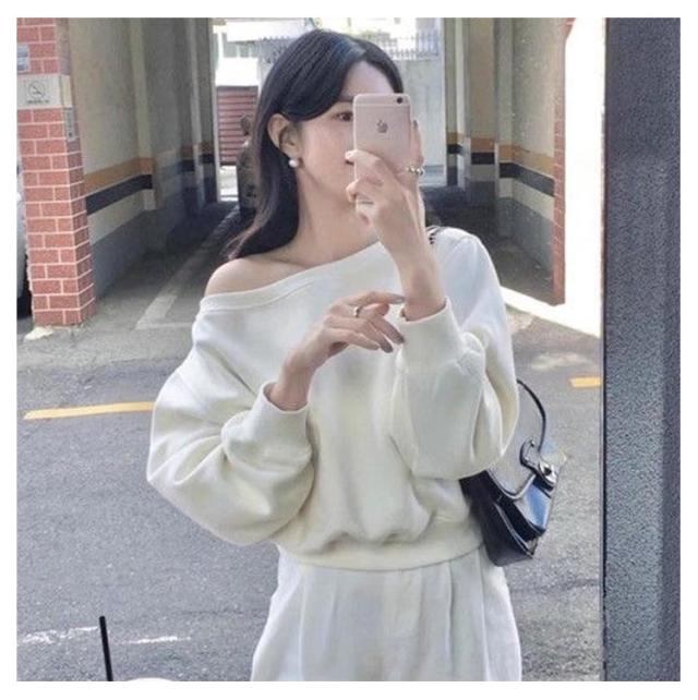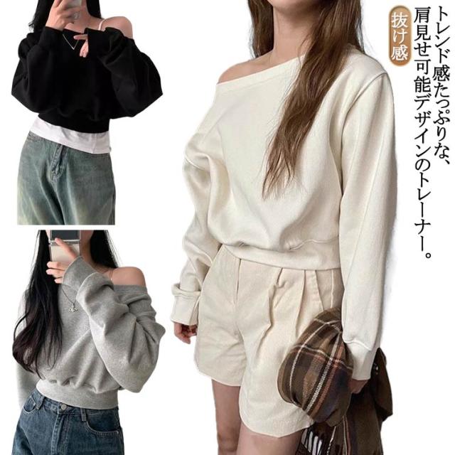 上品 tシャツ 韓国ファッションスウェット ワンショル 春 レディース トレーナー カットソー スウェット レディース オフショル トップス スウェット ワンショルトップス オフショル トップス オフショルダー 大人 グレー