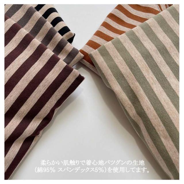 | 80cm 〜 130cm ・人気のボーダー柄のトップスです。 ・柔らかい肌触りで着心地バツグンの生地(綿95% スパンデックス5%)を使用してます。 ・レギンスやパンツと合わせやすいので、普段着や保育園、幼稚園着として是非お使いいただければと思います。 | |