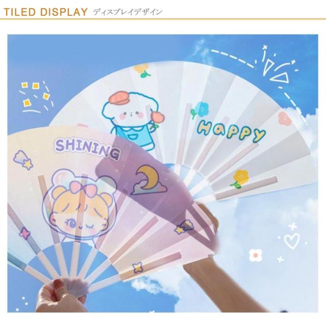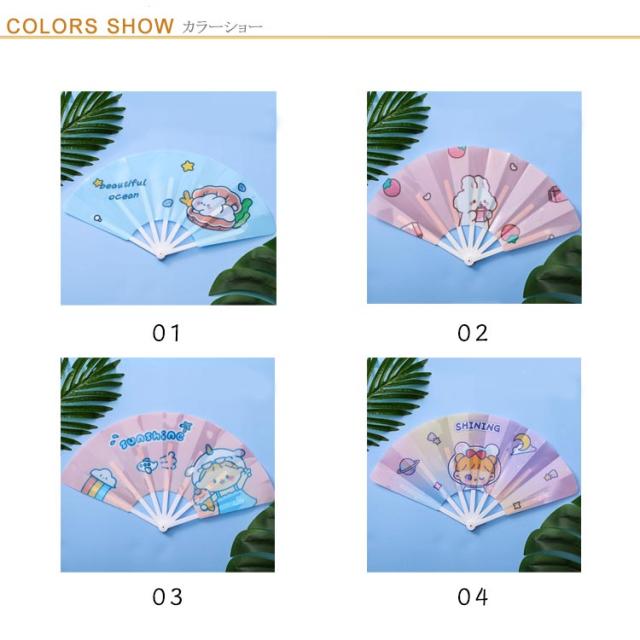 | キャラクター扇子/生き生きでかわいい/8タイプ柄デザイン PP素材骨組みスムーズ開閉&軽量設計、涼しい風を楽にお届け。 デザイン豊富クリアなプリント、お選びいただけます。 かわいいキャラクターデザイン、生き生きイラストで女子力UP。 4WAYで大活躍:インスタ映えするフォトプロップ、夏祭りにピッタリなダンス小物、オフィスの暑さ対策に、お部屋のプチインテリア。 | |
