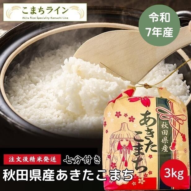 【七分付き3kg】令和7年産 秋田県産 あきたこまち 3kg 一等米 米びつ当番【天鷹唐辛子】プレゼント付き 白米 精米したて 沖縄・離島別途送料