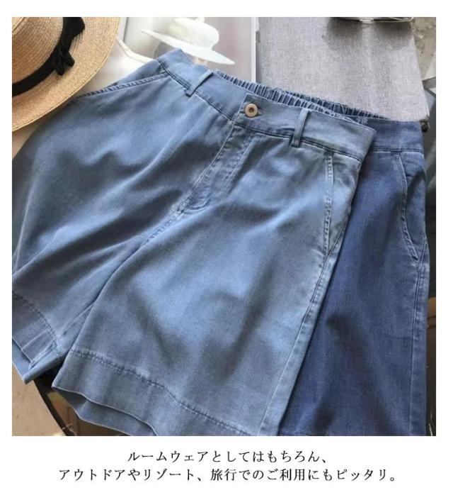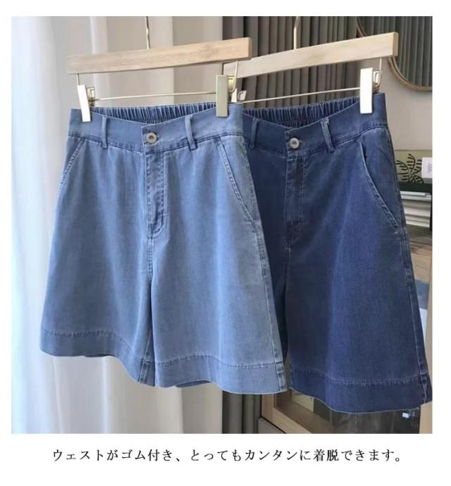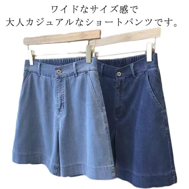 接触冷感 レディース 5分丈 夏服 デニムパンツ 涼しい ショートパンツ ショートパンツ 涼感 ワイドパンツ キュロットスカート ハーフパンツ ゆったり 薄手 ウエストゴム 体型カバー お洒落