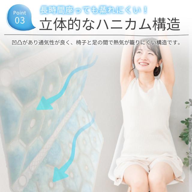 立体的なハニカム構造で通気性が良く、肌と接触する面も蒸れにくいです。