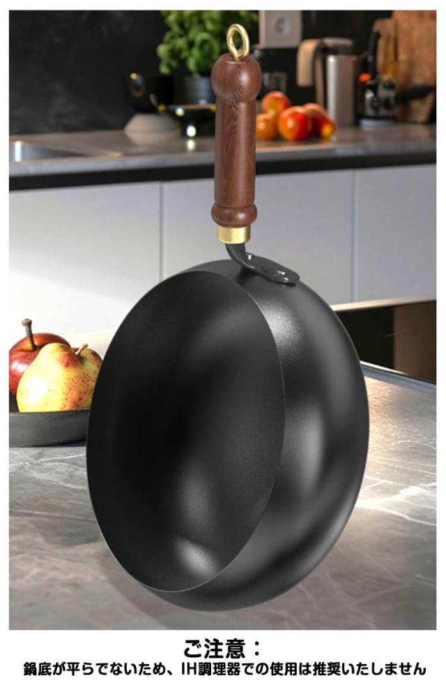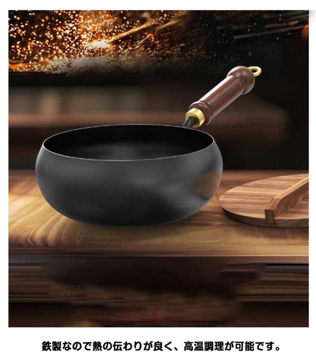 高温調理 鉄のフライパン 焦げにくい 炒め鍋 深型 フライパン 中華鍋 鉄製 誕生日 蓋付き 鉄分摂取 家庭用 キャンプ 調理道具 木製 結婚祝い 新築祝い プレゼント ギフト 軽量 小型 木製 フライパン