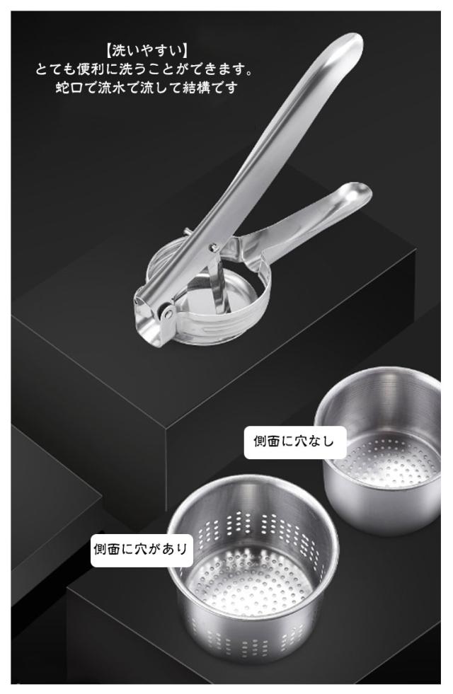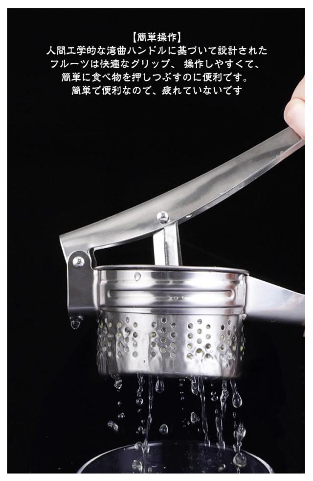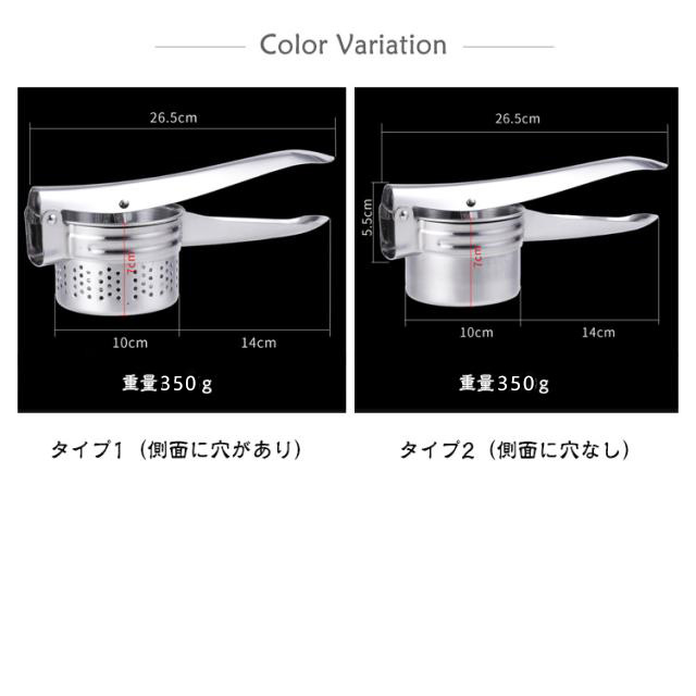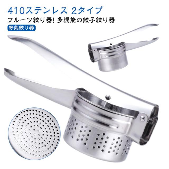| 410ステンレス 2タイプ 多機能の餃子絞り器 フルーツ絞り器! 野菜絞り器 【簡単操作】人間工学的な湾曲ハンドルに基づいて設計されたフルーツは快適なグリップ、 操作しやすくて、簡単に食べ物を押しつぶすのに便利です。簡単で便利なので、疲れていないです 【幅広い使える】ポテトシルク、キャベツ、ネギ、キノコなどのあらゆる種類の野菜に使用して、サラダを最適に選択できます。 肉の詰め物や冷たい料理を作る必要があるときは、この排水口を使って水をろ過することができます 【洗いやすい】 とても便利に洗うことができます。蛇口で流水で流して結構です | |