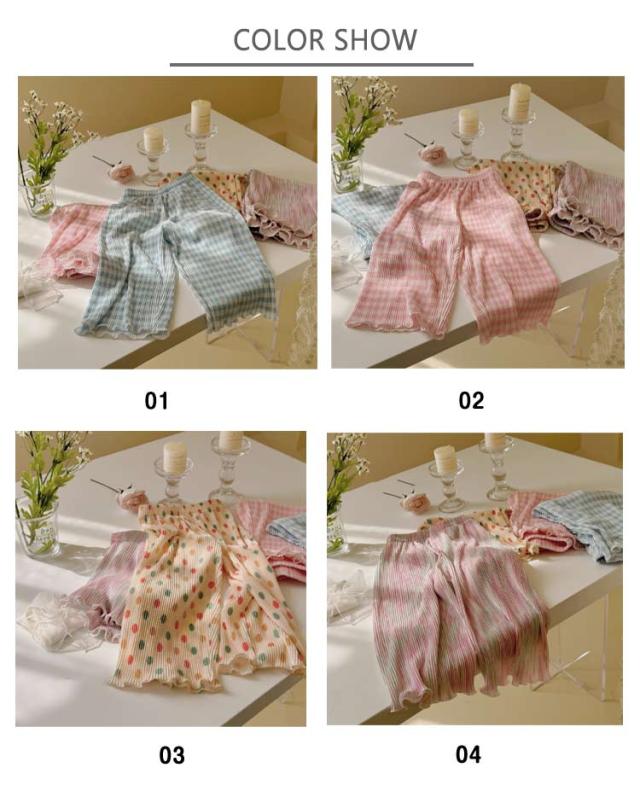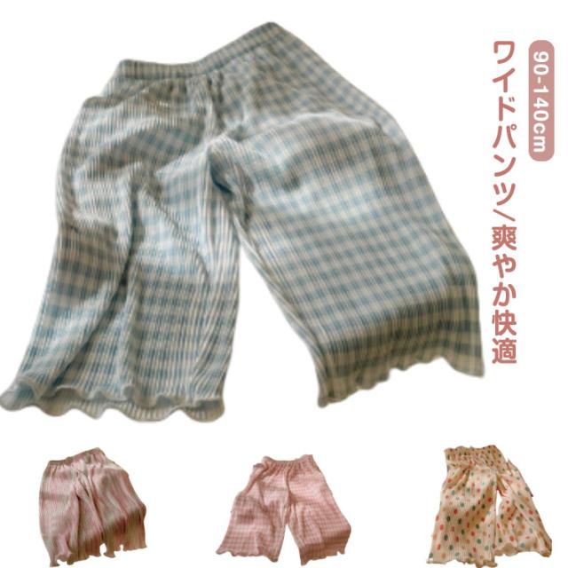 ボトムス キッズ服 女の子 ワイドパンツ 蚊よけパンツ 薄手 夏 長ズボン ワイドパンツ キッズ ドット パンツ チェック柄 フレアパンツ カラフル シワ 柔らかい おしゃれ ゆったり カジュアル ガールズ 100cm 110cm 120cm 130cm 140cm
