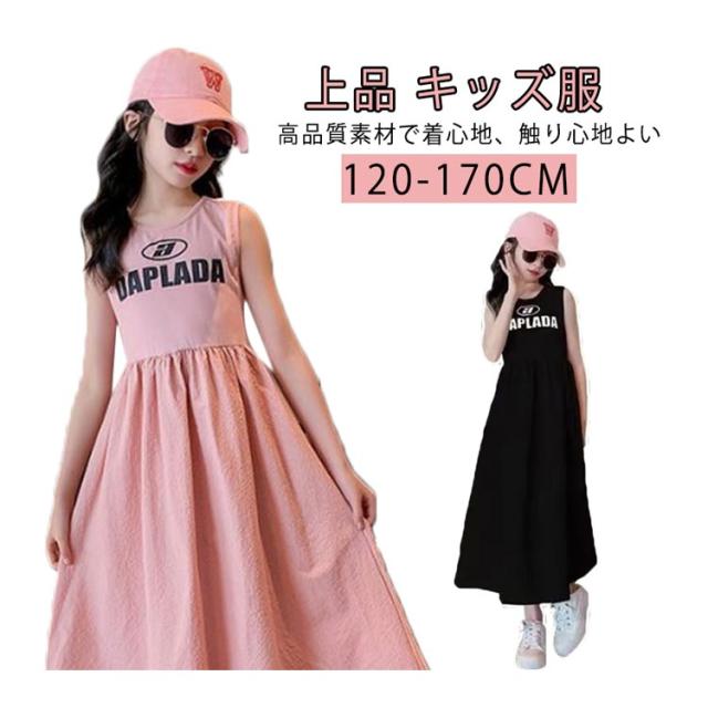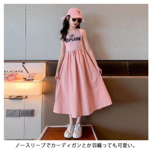 フレアワンピース ロングワンピース 女の子 無地 カジュアル ノースリーブ 上品 子供服 韓国風子供服 キッズ サンドレス 子供服 キッズ服 ゆったり 海 ビーチ 夏 ワンピース 120 130 140 150 160