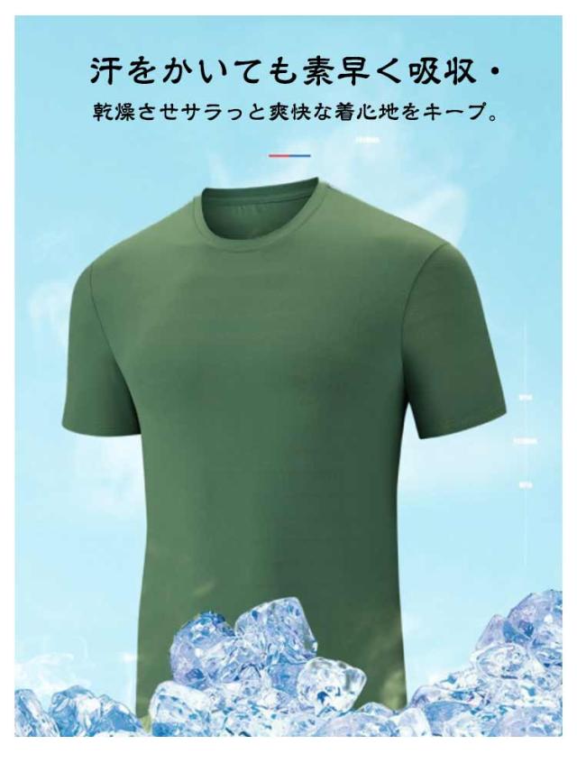 Tシャツ カジュアル 接触冷感 吸汗速乾 メンズ 夏服 インナー 大きいサイズ ゆったり 半袖 通気性 トレーニングウェア スポーツ ジム Tシャツ ストレッチ 薄手 丸首 無地 軽量 大きいサイズ 涼しい