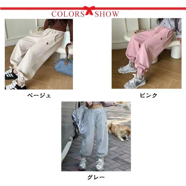 | ハートのワンポイント刺繍が目を惹くスウェットパンツ。 ウエストゴム+紐タイプでストレスフリーな穿き心地♪ ほどよいワイド感とハイウエストで穿くだけでスタイルアップ。 程よい厚みでシーズンレスにお使いいただけます。 | |