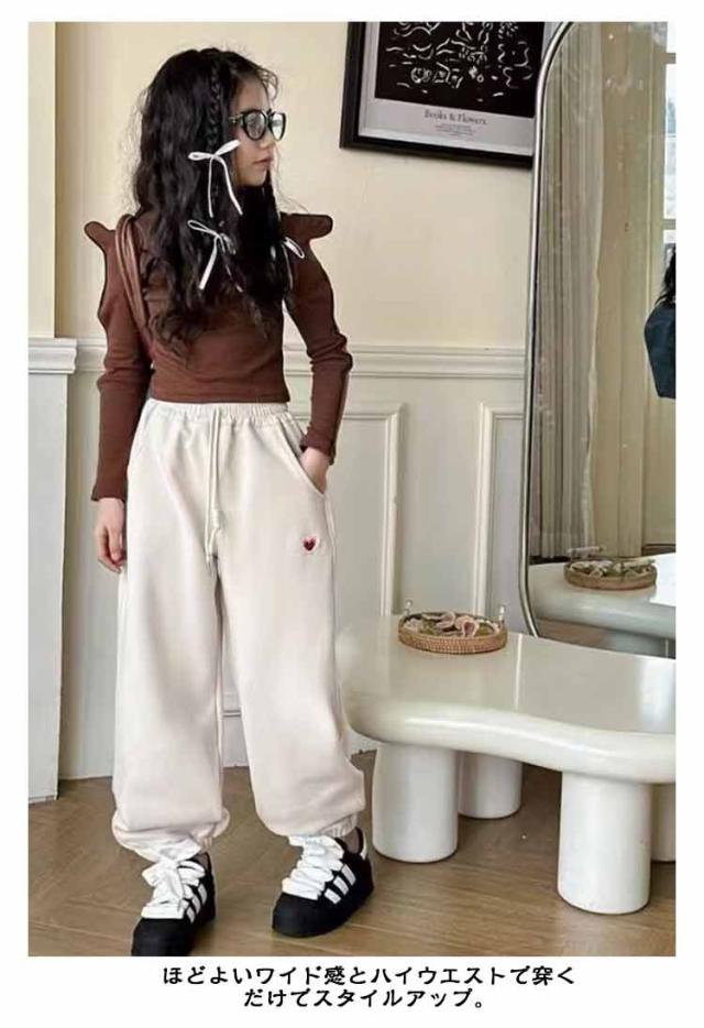 キッズ ジャージ 130 子供服 ジュニア ロングパンツ 女の子 スポーツ 長ズボン ハート刺繍 スウェットパンツ 部屋着 ルームウェア 男の子 小学生 中学生 春 秋 冬 ウエストゴム 120 140 150 160 170