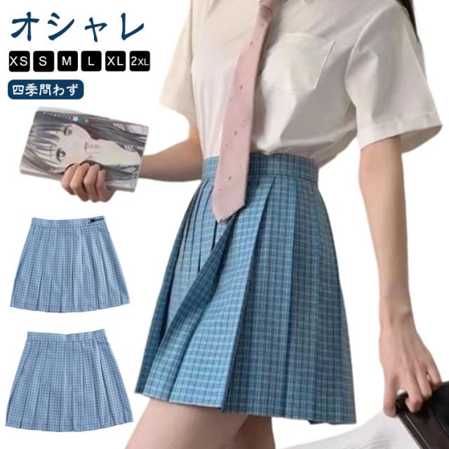 スカート 水色 スカート 制服 お受験 ジュニア 学校 チェック柄 チェック プリーツスカート 女子高生 高校生 学生 大きいサイズ 中学生 ブルー スクールスカート 入学式 総丈 36 39 42cm XS S M L XL XXL ミニスカート 学生制服 人気