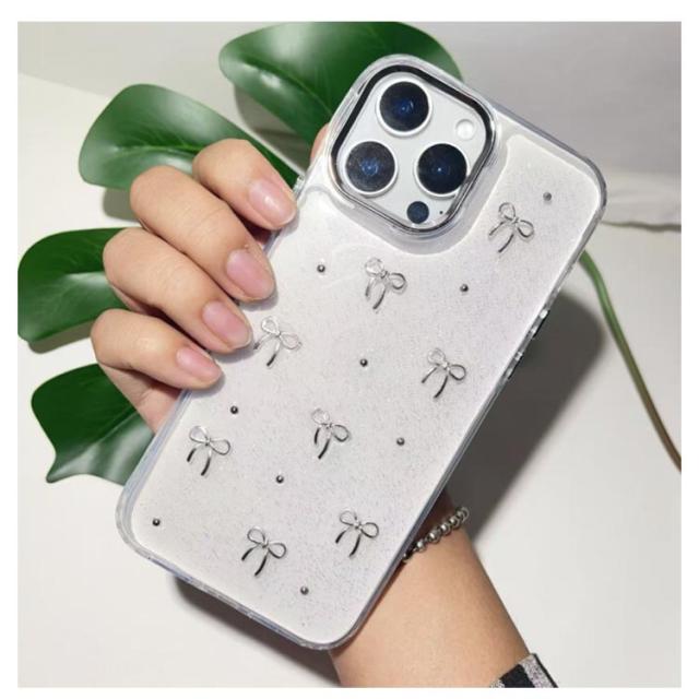 ケース おしゃれ 15 12 iPhone16 16promax iphone14 ケース iphone13 ケース 2個入り Plus pro iphone iPhone15 透明 Pro iPhone16pro 14 Max 16plus iphone11 ケース ミニリボン パール ケース ケース 韓国 可愛い クリアケース きらきら ラメ入り シルバー