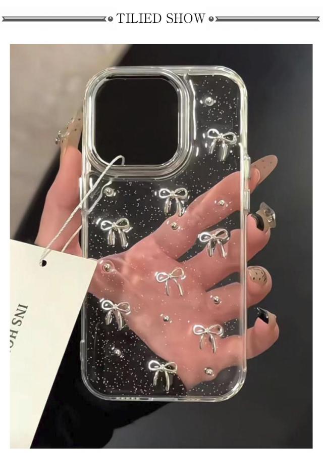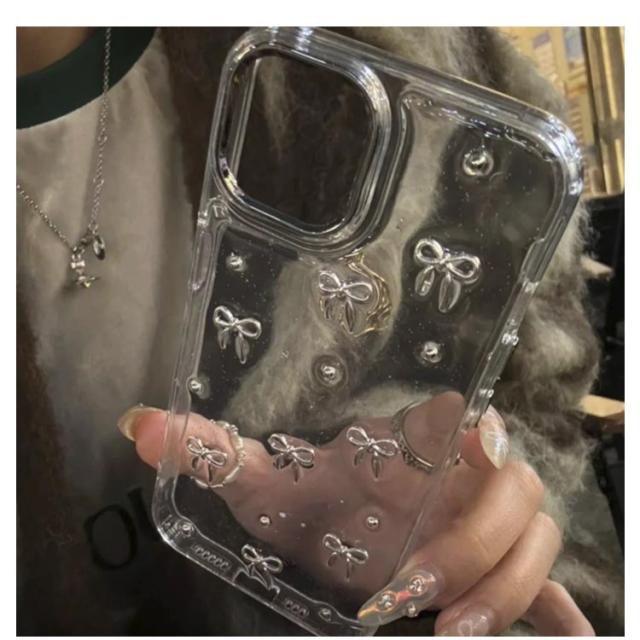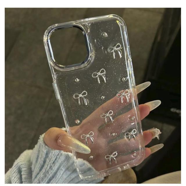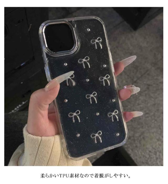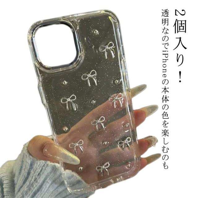16plus Plus iPhone16pro iphone 2個入り 14 iPhone16 16promax ケース ケース pro ケース ケース ケース iphone14 iPhone15 iphone13 ケース Pro Max 15 iphone11 ケース ミニリボン パール 透明 おしゃれ 韓国 可愛い クリアケース きらきら ラメ入り シルバー