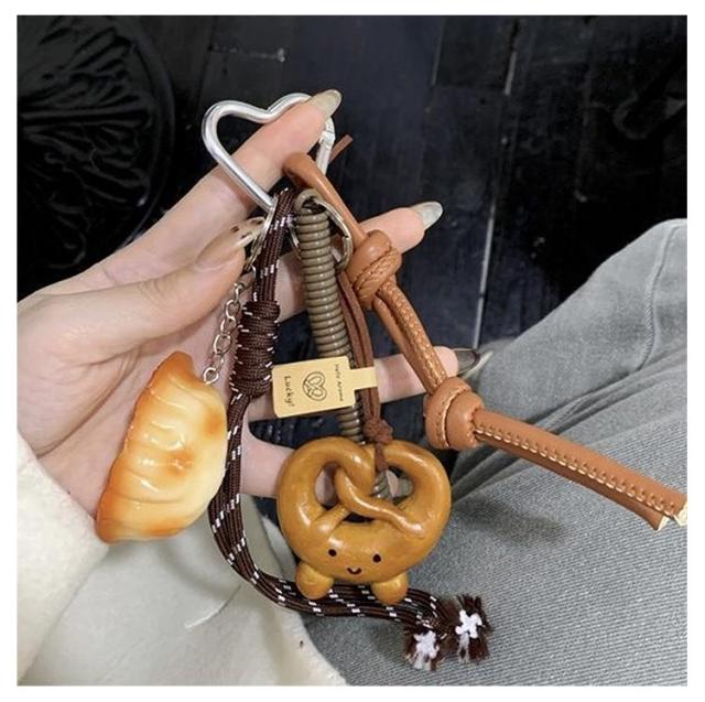 アクセサリー バッグチャーム パン キーホルダー 可愛い ファッション雑貨 送料無料 ぬいぐるみ 小物 かわいい キーリング かわいい 鞄飾り ハート チョコレート パン アルカリ性パン リング 韓国キーホルダー ラブリー ガーリー 学生 カジュアル