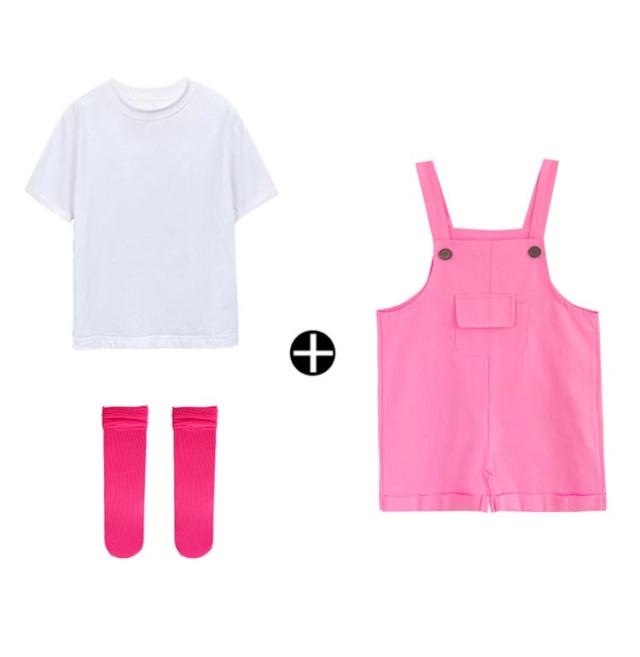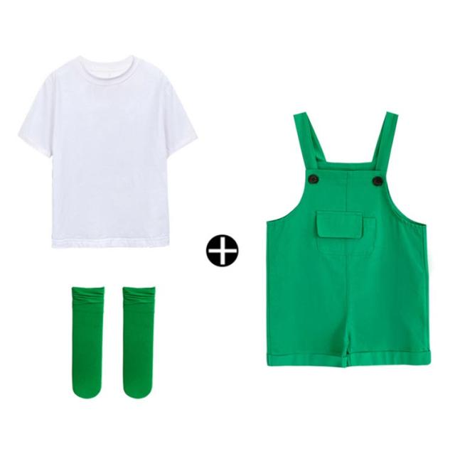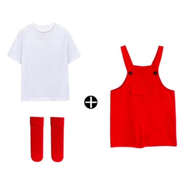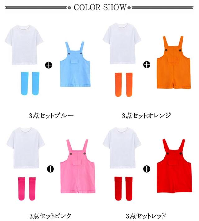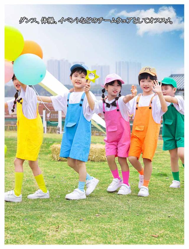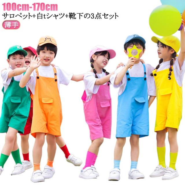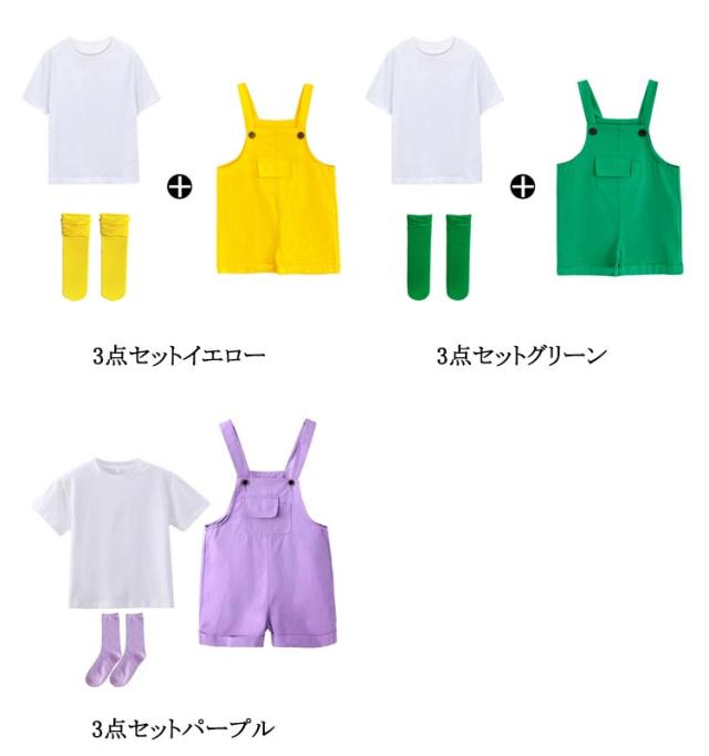 | 100cm〜170cm!サロペット+白tシャツ+靴下の3点セット 発表会や記念写真撮影にピッタリのサロペットパンツ。 明るい色合い、こどもをより可愛く映えます。 ダンス、体操、イベントなどのチームウェアとしてオススメ。 | |