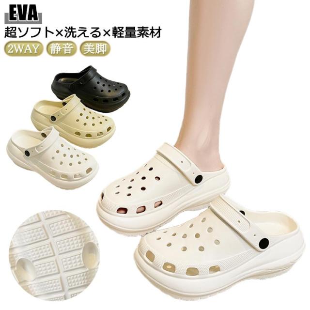 | 【EVA】超ソフト×洗える×軽量素材 超ソフトな履き心地でブームになったEVAシューズ。 ザブザブ洗えて発色よく、汗や水に強いシリーズ ! 足に心地良いクッション素材! ベルトを前に倒せばサボにもなる。 | |