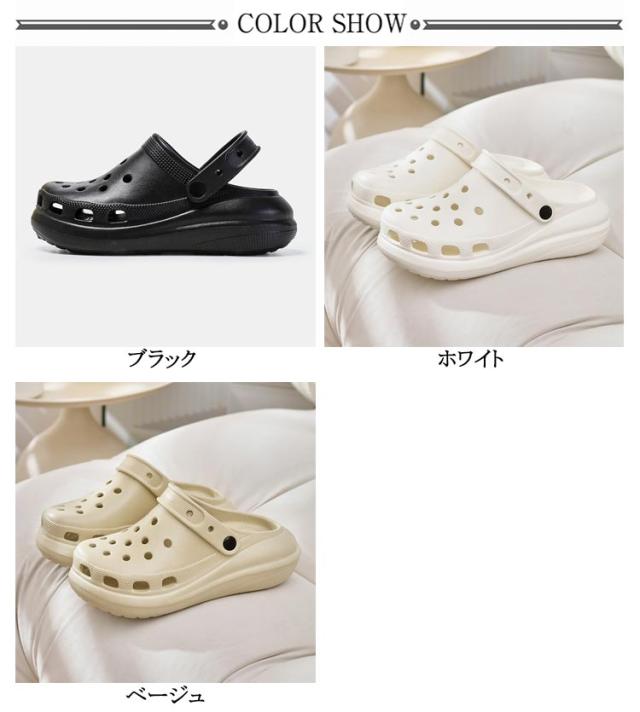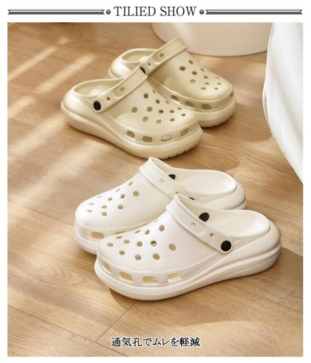 | 長時間歩行がさらにラクになる厚底EVAサンダル ・凹凸付きで滑りにくい ・パンチングでムレを軽減 ・インソールはより柔らかなEVA素材で衝撃を吸収 ・通気孔でムレを軽減 ・洗っても乾きやすい! ・(2WAY仕様)かかと部分がソフトで踏めばスリッポンタイプになる | |