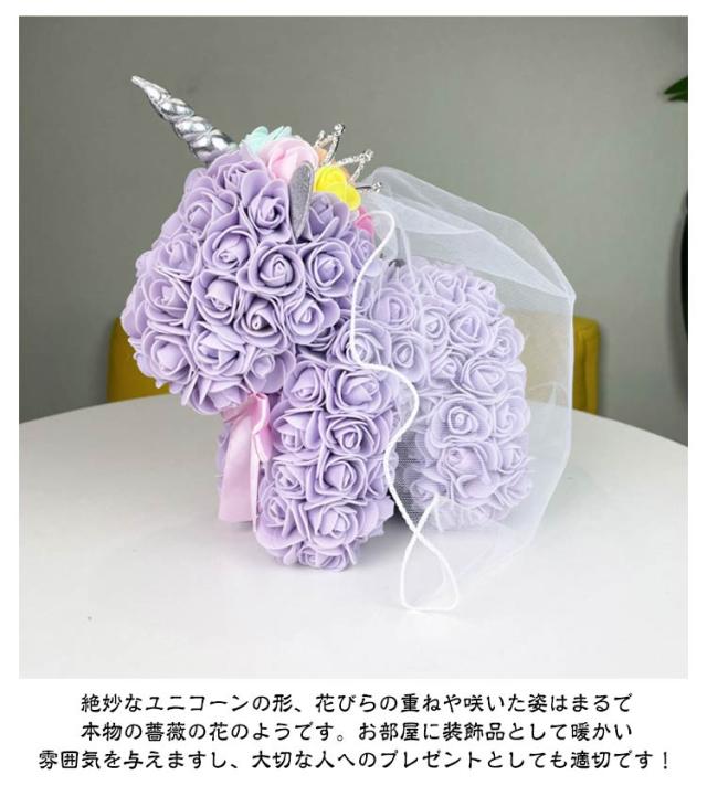 薔薇 枯れない花 ユニコーン バラ ぬいぐるみ ローズブーケ バラの造花で作られたユニコーン バラの造花で作られたユニコーン フラワー 花 フラワーギフト 造花 開店祝い 出産祝い 結婚祝い 母の日 ギフト プレゼント 結婚式 記念日 発表会 お祝い