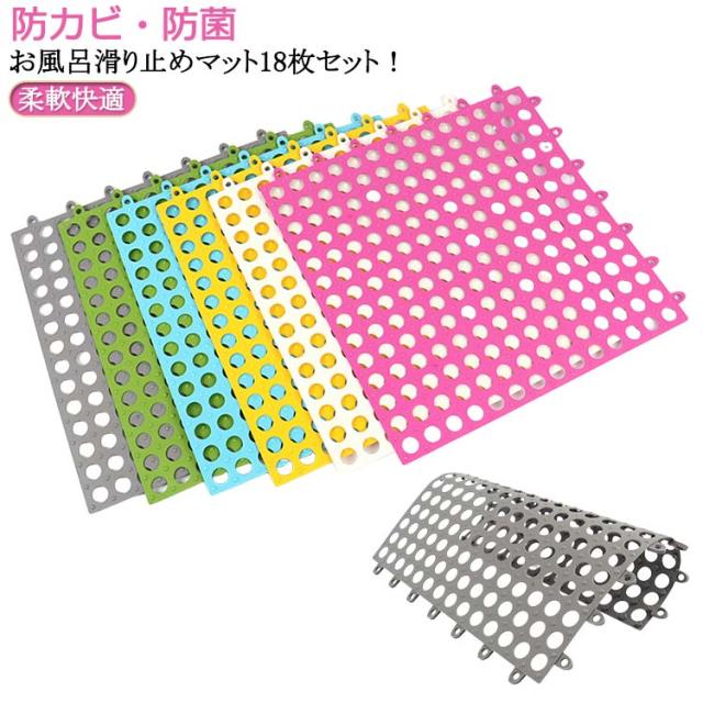 お風呂マット キッチンマット 18枚セット 洗い場マット 急速排水 転倒防止 浴室内 介護用 浴槽マット 赤ちゃん 滑り止めバスルームマット お年寄り お風呂滑り止めマット 介護用品 入浴 すべり止めマット 防カビ 18枚セット 抗菌 防臭
