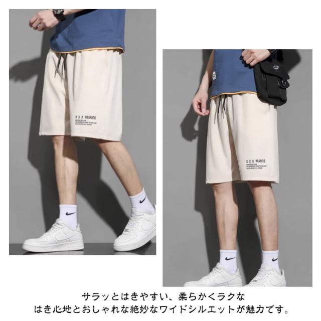 | ドライ吸汗速乾素材を使用しさらりとした肌触りと優れた通気性が魅力のメンズハーフパンツ。 ウエスト部分はゴムとドローコード付き。 両サイドとヒップはポケット付きで小物の収納も安心◎ 夏の暑さの中でも穿いてないみたいに軽く涼しい着心地です。 スポーツ、ランニング、フィットネス、部屋着または日常着に非常に適します。 サラッとはきやすい、柔らかくラクなはき心地とおしゃれな絶妙なワイドシルエットが魅力です。 | |