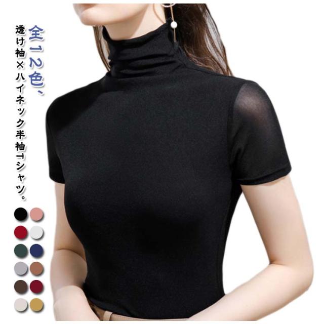 タートルネック レディース 無地 Tシャツ インナー メッシュ袖 半袖 トップス 重ね着 メッシュ素材 半袖tシャツ 全12色 ハイネックtシャツ レイヤード カットソー フィット ハイネック 半袖 メッシュ袖 大きいサイズ 春夏 スリム 半袖 M L XL 2XL