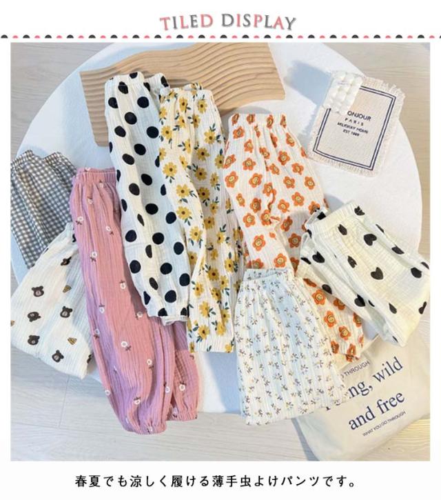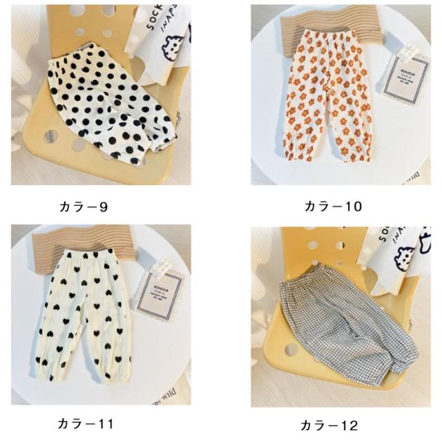全12色!虫除け キッズ ロングパンツ 子供 ガーゼ 涼しい 虫よけ 全12色!虫除け ボトムス バルーンパンツ 通気性 ズボン ベビー服 長ズボン 薄手 蒸れない ナチュラル ルームパンツ 春夏 女の子 男の子 快適 裾ゴム カジュアル 花柄 可愛い 80-130cm