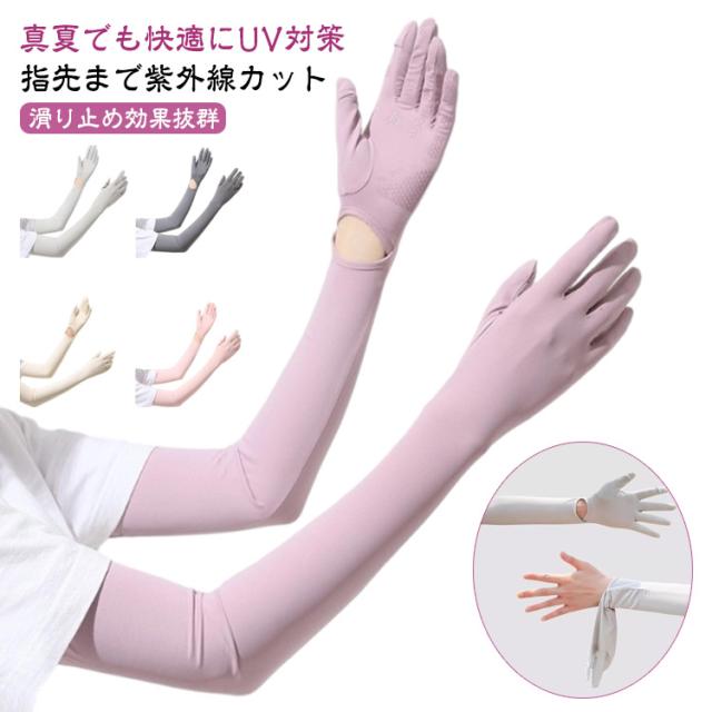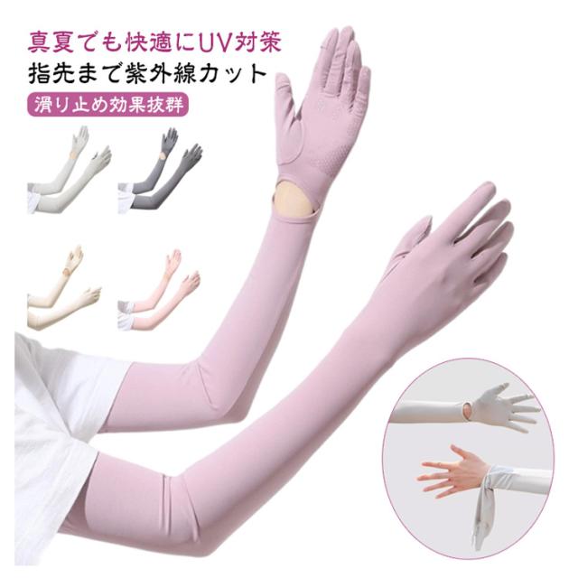 アームスリーブ スマホ操作 日焼け防止 冷感 ひんやり UVカット手袋 腕カバー 袖カバー アームカバー 日焼け止め ロング 無地 UVカット 手袋着脱可能 レディース uv対策 夏 UPF50+ 接触冷感 吸汗速乾 滑り止め サイクリング 運転 送料無料 母の日 プレゼント